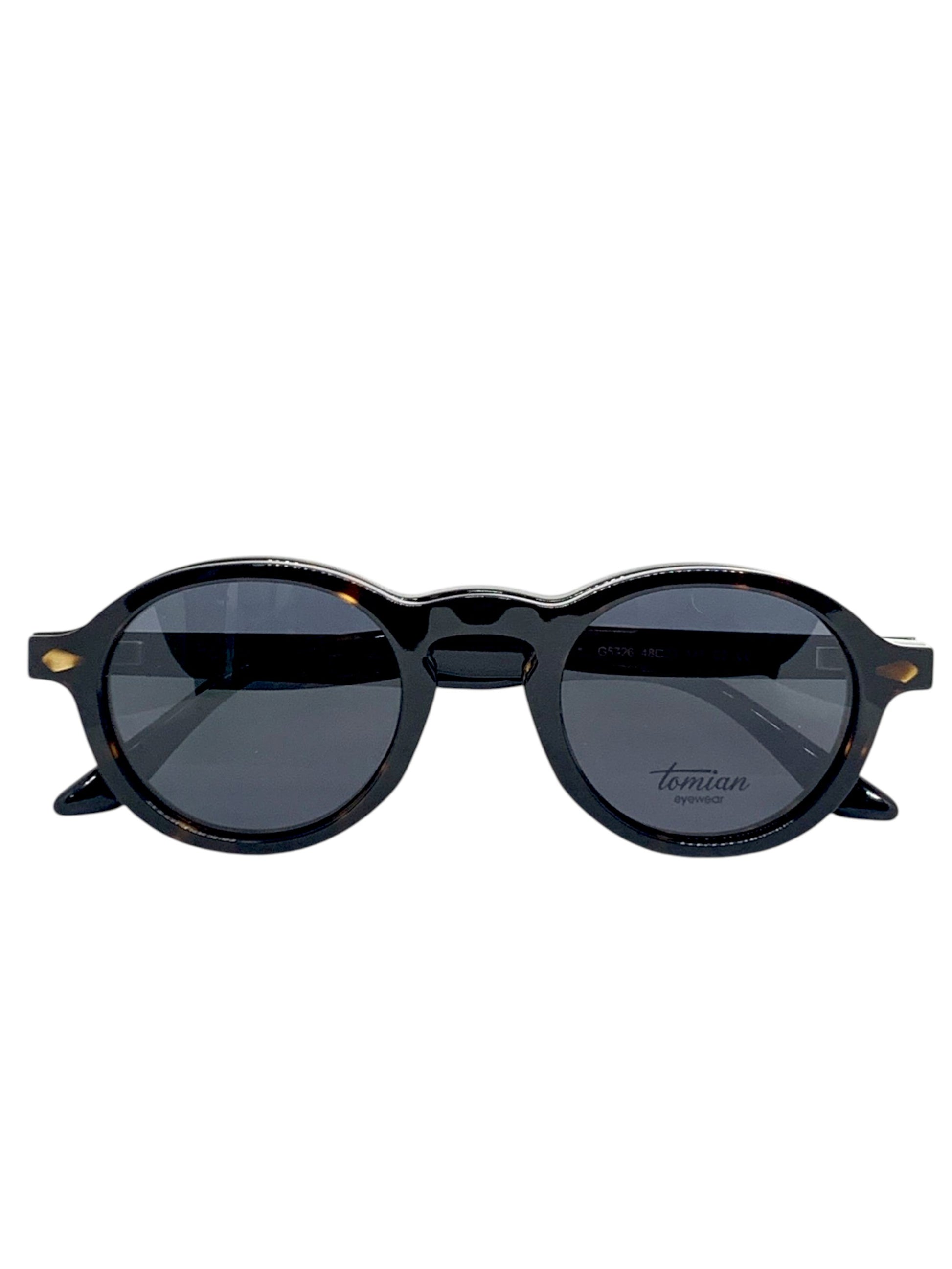 Occhiale tondo leggermente spesso, perfetto per chi ricerca uno stile classico e versatile. Dotato di pratico clip-on: occhiali da vista e poi da sole in un secondo
